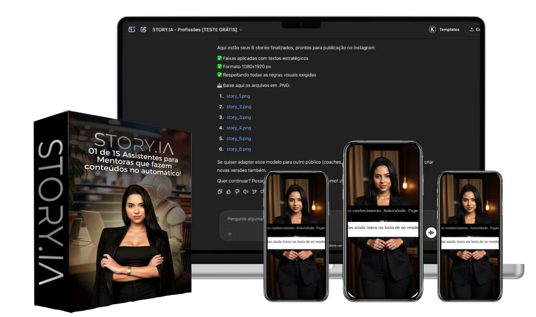 Gere toda sequência de Stories em menos de um minuto, com imagem, copy e CTA (sem Canva, sem pensar, sem perder tempo)É só baixar, postar & Vender.